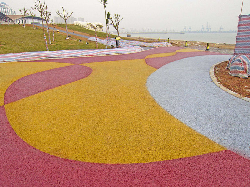 透水混凝土在滿足強度要求的同時,還需要保持一定的貫通孔隙來滿足透水性的要求,因此在配制時除了選擇合適的原材料外,還要通過配合比設(shè)計和制備工藝以及添加劑來達到保證強度和孔隙率的目的。透水混凝土由骨料、水泥、水等組成,多采用單粒級或間斷粒級的粗骨料作為骨架,細骨料的用量一般控制在總骨料的 20% 以內(nèi);水泥可選用硅酸鹽水泥、普通硅酸鹽水泥和礦渣硅酸鹽水泥;摻合料可選用硅灰、粉煤灰、礦渣微細粉等。投料時先放入水泥、摻合料、粗骨料,再加入一半的水用量,攪拌 30s ;然后加入添加劑(外加劑、顏料等),攪拌 60s;較后加入剩余水量,攪拌 120s 出料。