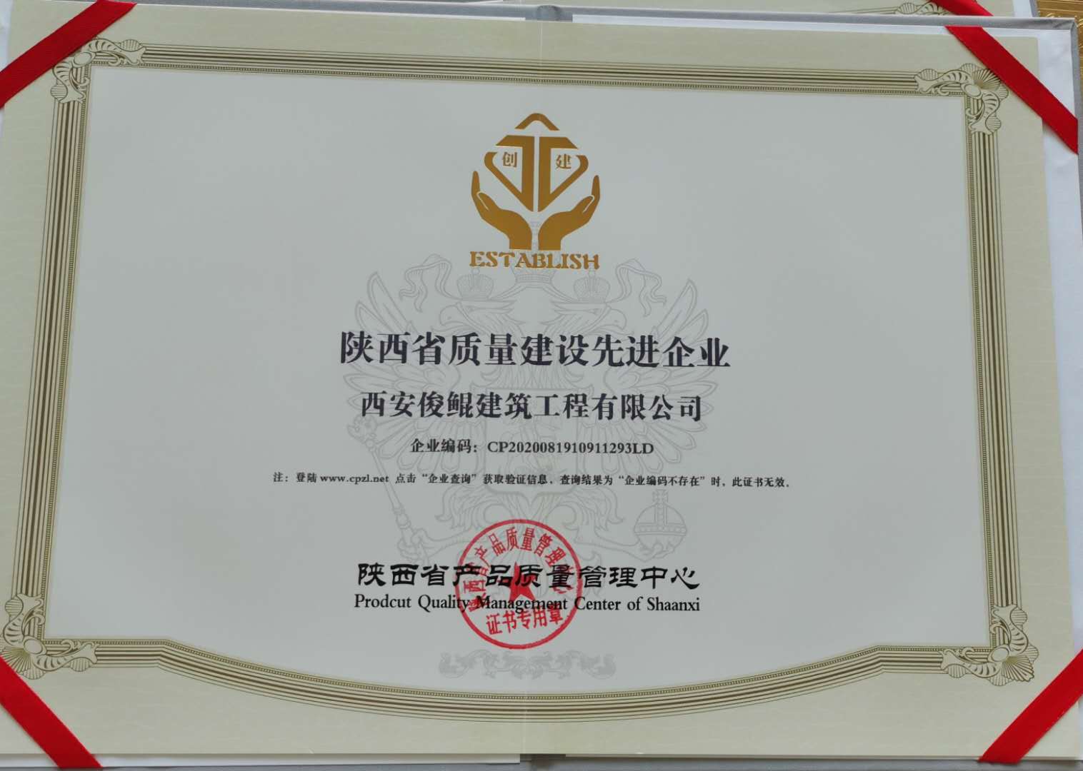 陜西省工程質量誠信雙滿意單位(西安俊鯤建筑工程有限公司)